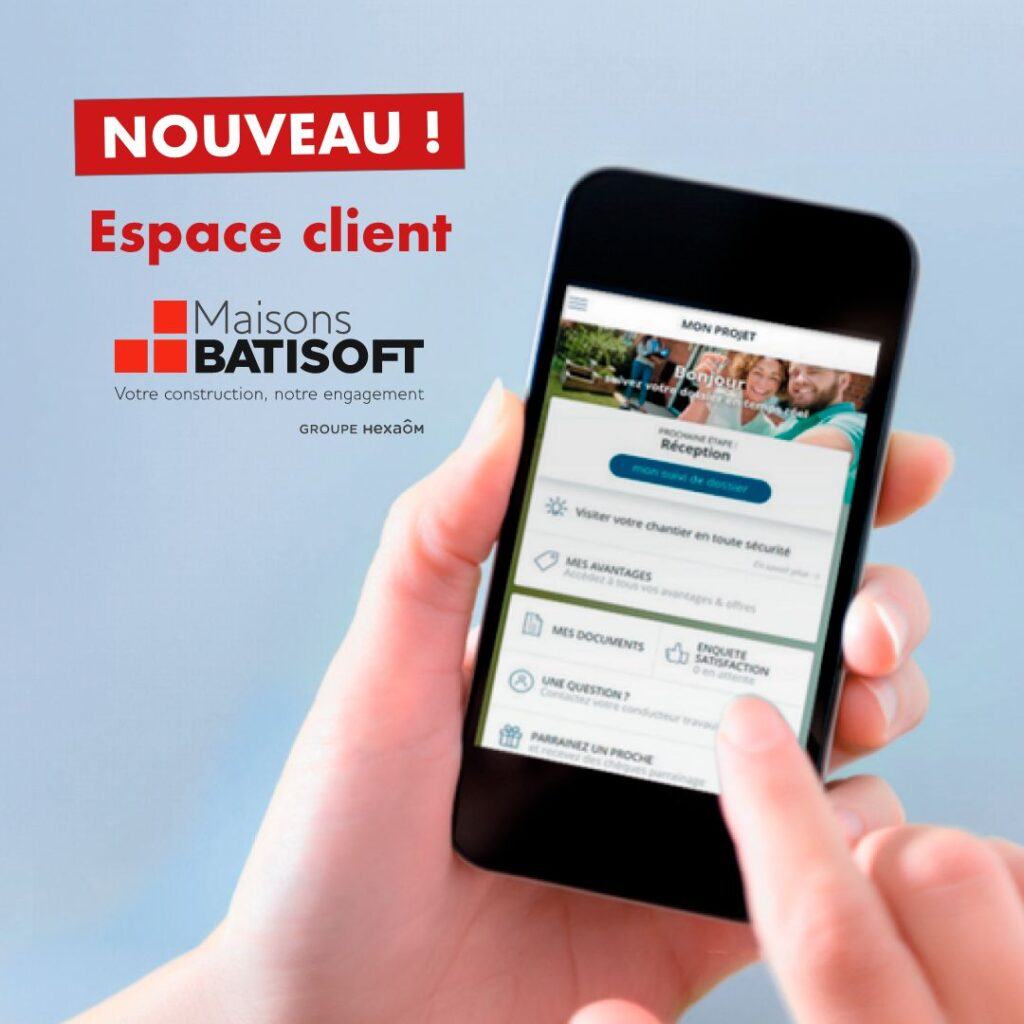 Pour suivre l’avancée de votre projet de construction, Maisons Batisoft a mis en place un Espace Client dédié*. A tout moment, depuis votre ordinateur ou votre smartphone, restez informé de la progression de votre chantier et des étapes importantes de celui-ci. Votre espace client Maisons Batisoft vous permet de suivre toutes les étapes de votre projet : depuis la signature de votre CCMI à la remise des clés et même au-delà avec vos demandes de Service Après-Vente. Vous êtes ainsi en mesure de suivre et d’être acteur de votre projet de construction.